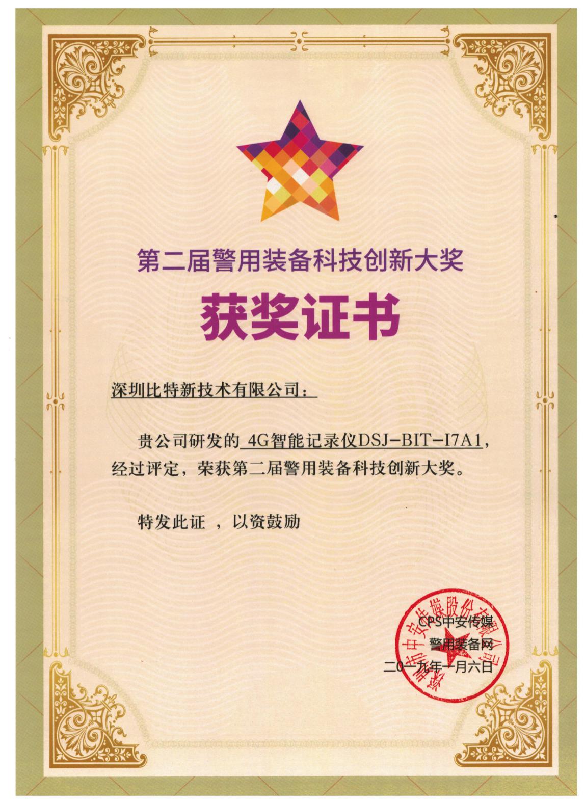 1月8日, “第二屆警用裝備科技創新大獎”頒獎盛典在深圳舉行,來自公安部相關部委、部屬檢測中心、標準制定單位、公安院所(校)以及各省市自治區各級公安機關的領導、專家和全國300余警用企業的負責人共同參加了此次盛會,深圳比特新技術有限公司的4G智能執法記錄儀榮獲中國警用裝備科技創新大獎,該獎項是深圳比特第二次憑借4G執法記錄儀獲得的警用裝備的權威獎項。本次獲獎不僅是比特在警用執法記錄儀的創新,更是比特多年一直秉承4G執法記錄儀行業創新與領導里面的踐行。